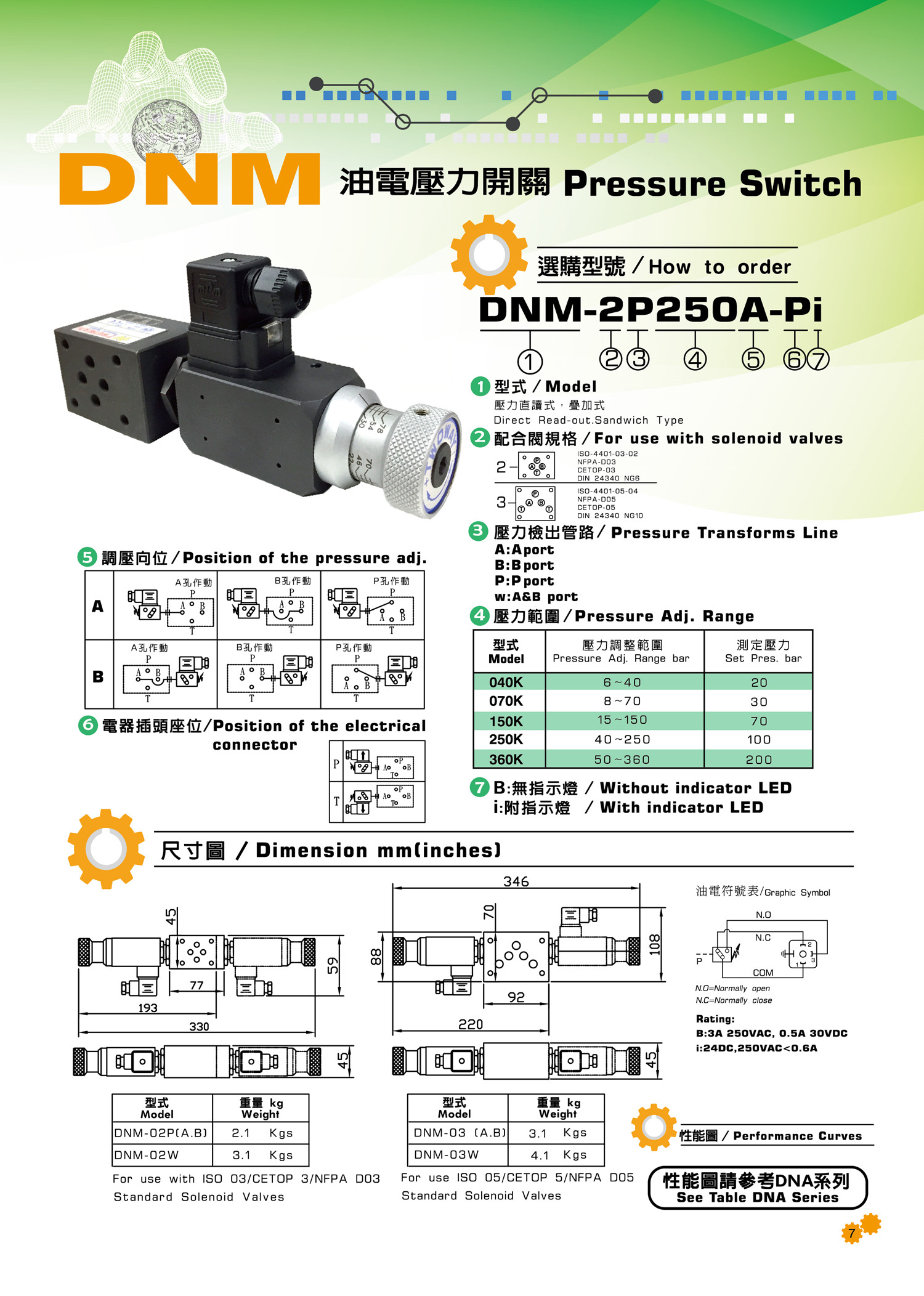 TWOWAY臺肯壓力繼電器DNM-2P250A-Pi