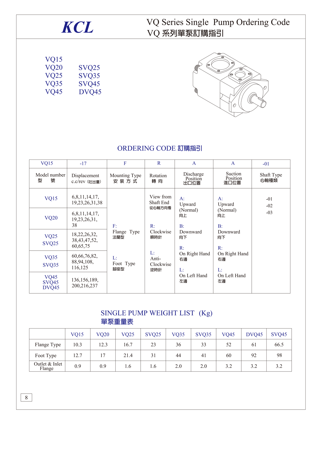 VQ系列單聯泵-VQ15,VQ20,VQ25,VQ35,VQ45,SVQ25,SVQ35,SVQ45,DVQ45